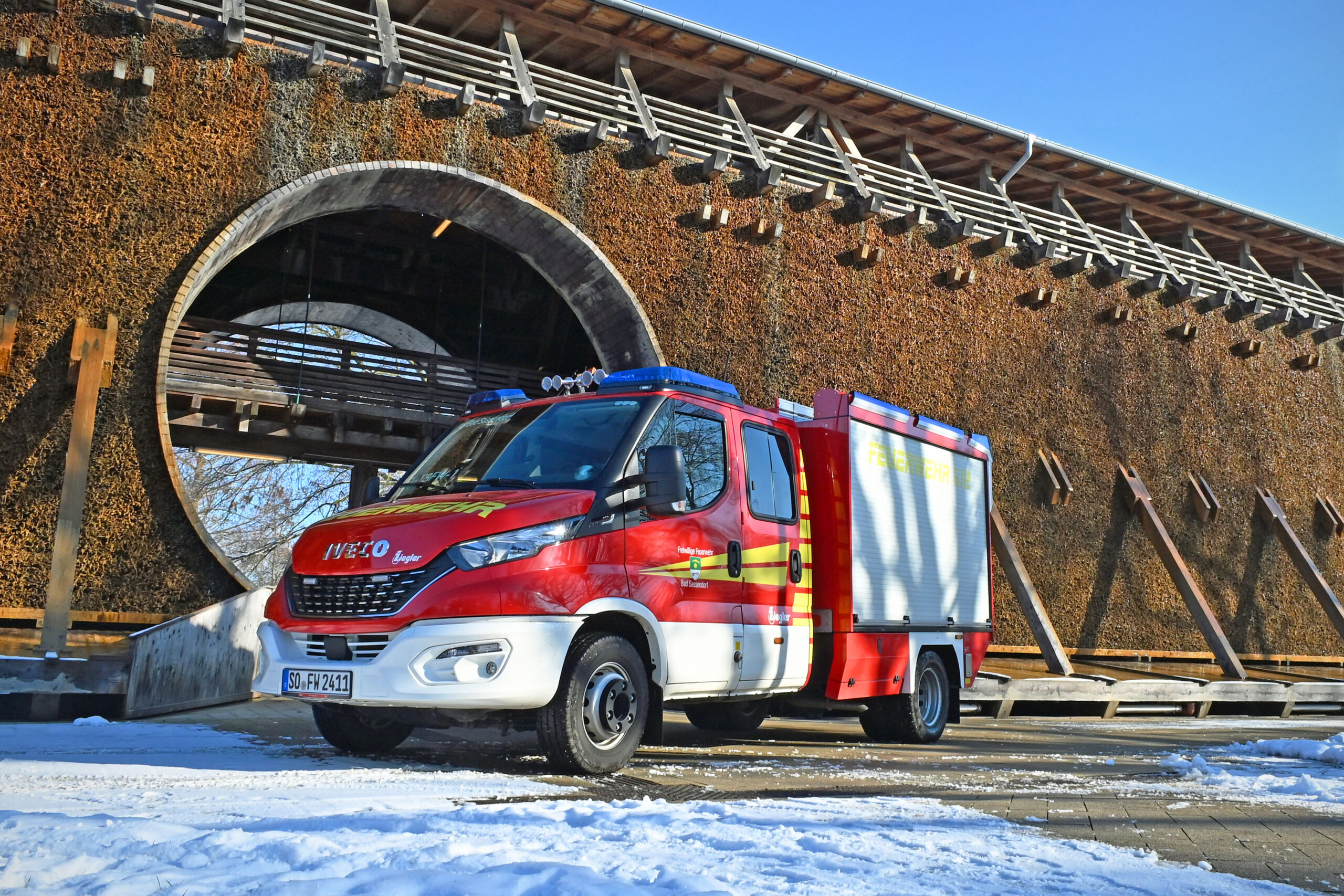 Im Gerätehaus Mitte sind die Drehleiter und der Einsatzleitwagen stationiert, die zu Einsätzen im gesamten Gemeindegebiet ausrücken.